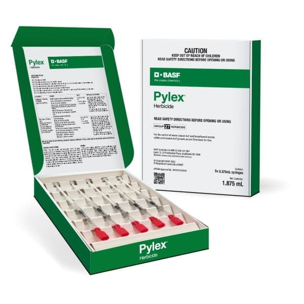 - Pylex Herbicide is available in 5x 0.375mL syringe packs.